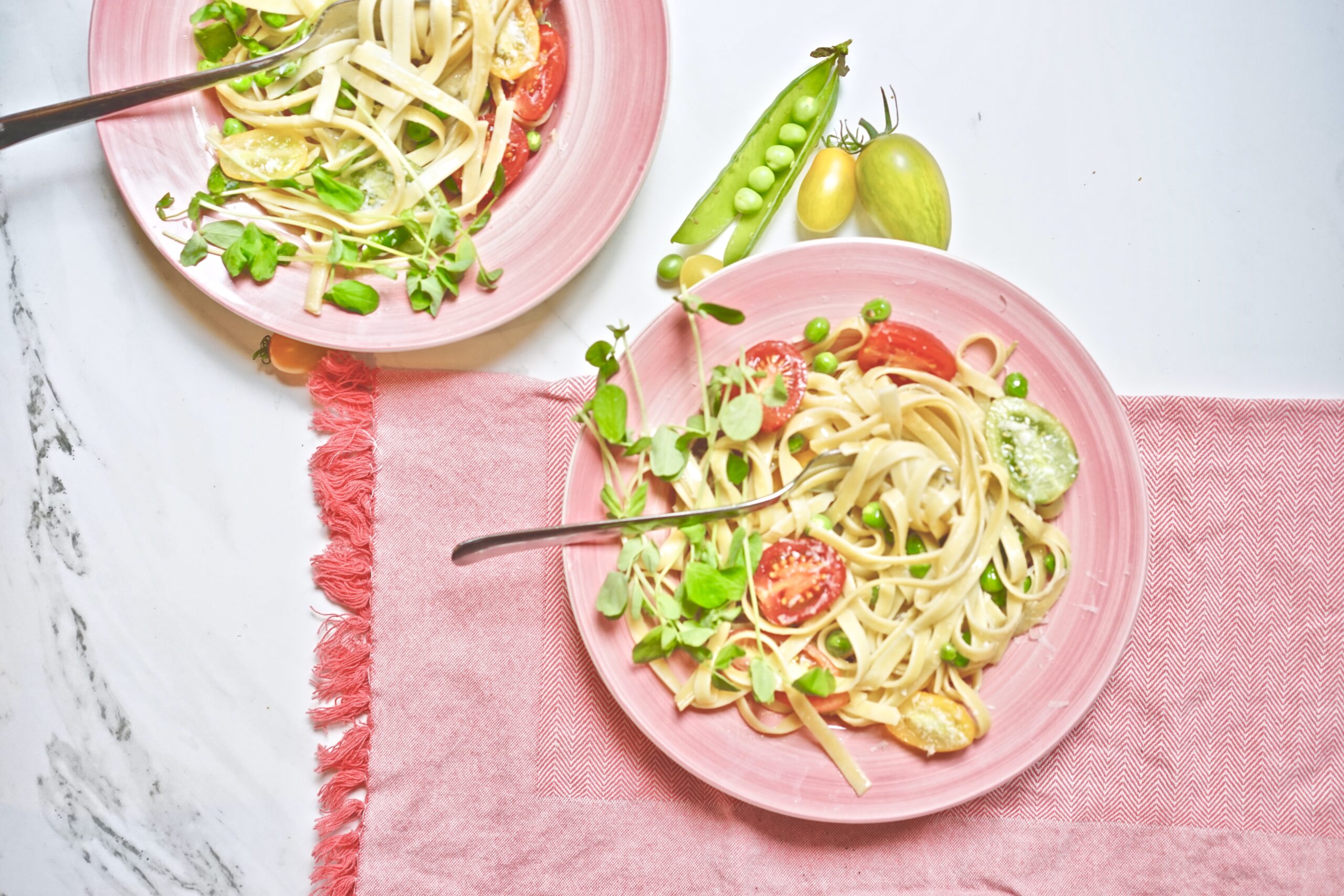Easy Fettuccini with Fresh Tomatoes and Green Peas
